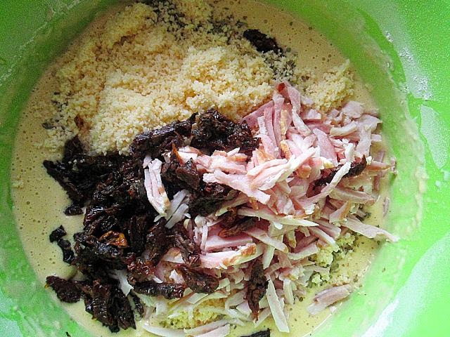 Gofry z boczkiem i suszonymi pomidorami