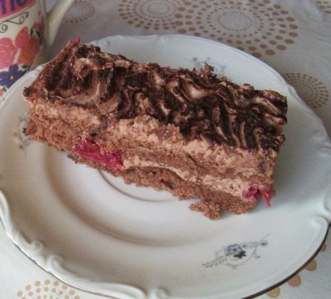 Zazwyczaj nie lubimy ciast na biszkopcie… No może z wyjątkiem takich z galaretką. Bo biszkoptowe placki to przeważnie gruby biszkopt i mało dodatków na górze. A taki suchy biszkopt wymaga dużo dodatków aby dawały poślizg 🙂 Taki krem i wiśnie wspaniale się komponują z ciemnym biszkoptem. Polecamy!