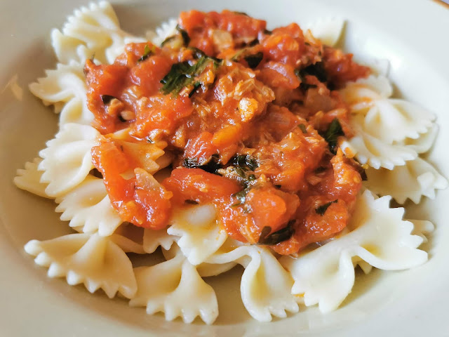 Danie smakowało wyśmienicie. Nie jesteśmy aż takimi fanami tuńczyka, baliśmy się, że sos będzie zbyt intensywnie smakował rybą, ale tak nie jest, ma przyjemny lekko wyczuwalny smak tuńczyka!