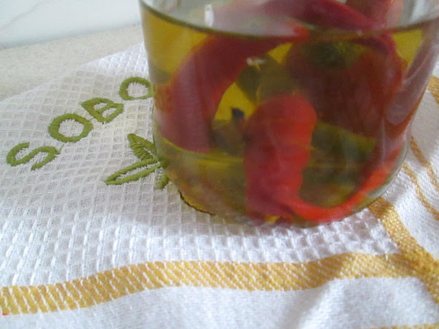 Długo się nie zastanawiając kupiliśmy kilka sztuk, płacąc za nie całe 40groszy 🙂 Cali ucieszeni wróciliśmy do domu, przygotowaliśmy z części pikantny sos śmietanowy do makaronu a pozostałą chilli postanowiliśmy wykorzystać do przygotowania domowej aromatyzowanej oliwy. Cena sklepowej jest równie kosmiczna. A przygotowanie jej jest dziecinnie proste.