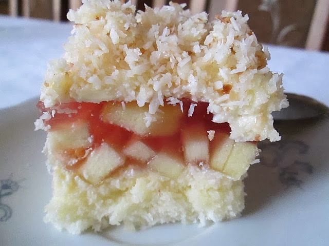 Na patelni prażymy wiórki kokosowe z cukrem i margaryną. Posypujemy wierzch placka jak lekko ostygną. Wkładamy do lodówki i jemy jak będziemy chcieli.
