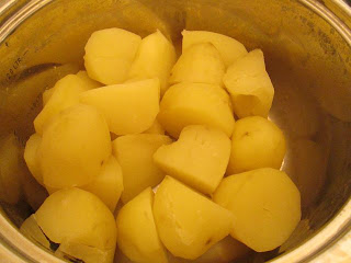 Ziemniaki obieramy i płuczemy! 1/3 z nich gotujemy, pozostawiamy do ostygnięcia. Najlepiej dzień wcześniej ugotować po prostu więcej ziemniaków do obiadu by nie dodawać sobie więcej pracy. Te ziemniaki mielimy w maszynce.
