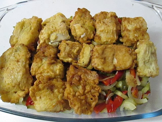 Na spód miski lub żaroodpornego układamy rybę. Na nią dajemy trochę warzyw, potem znowu ryba i warzywa. Na końcu zalewamy całość naszą zalewą. Jemy gdy całość się „przegryzie” i ostudzi. Najlepiej na drugi dzień. Smacznego!